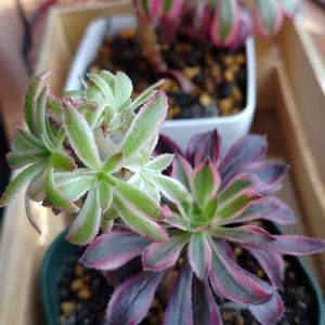 『マリド錦』 やっと葉が綺麗に揃ってきたのに、凍っていました… 【ミニハウス】的な屋内に入れていたアエオニウム達、殆どカチコチに…😿 恐るべし爆弾低気圧❄