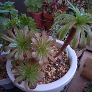 先輩からのもらっ多肉 アエオニウム レモネード 暑くなってきてキュッと顔が丸まってきました💕東側の軒が出来たら1番に特等席へご案内したいと思います🤗