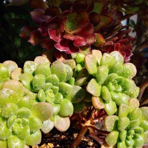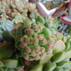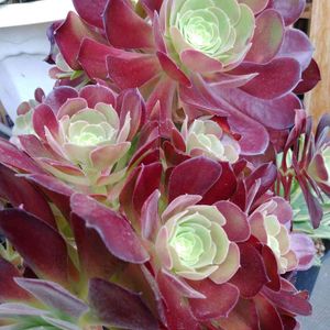 アエオニウムが元気で嬉しいです リンドレーも肉厚な花みたいでお気に入り ブーケのように増やしたいのに カットするタイミングをまた逃す… 秋まで我慢するとしますか