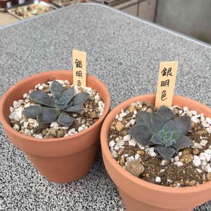 多肉始めたばかりのときに名無しで購入したやつ。銀明色かと言っていただいてたアレです。 結局銀明色買って見比べてみたら色がちがうし、銀明色交配種の銀武源ともちがう。 とりあえず「?01」って呼ぶことにしました。でも葉挿しで育てた右上の「?01」は色も銀明色に似てきたかも。 とりあえずこの子たちはもう銀明色にはなれない…( ˘ω˘ )