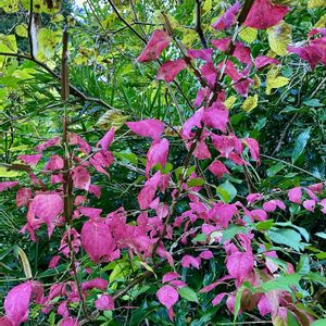 ニシキギ(ニシキギ科)神奈川県より 2025.11.08撮影📲在来種 🍂世界3大紅葉樹の1つ🍂 北側の日陰なので、ちょっと色が薄いかも⁈