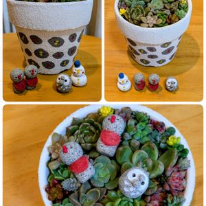 ①②やっとこKOHさんの鉢に寄せ植えできたぁ~〜いしころたん♥♥ 本当はもっと可愛さ爆発してるのに、どうも私はパシャが下手くそで〜くーーっ悔しい💦 しかも、うちの石ころたん、どこぞに旅立ち中〜〜大切にしてないわけじゃなくて、みんなでどこかにお出かけ中なのは、私がいろんなとこに置きっぱなしにするので、歳のせいと許してね〜〜こーんなとこに置いちゃってる〜は近頃の悩み💦 自分でも困っています~〜もう認知症予備軍〜〜〜ケセラセラしちゃってるんで〜〜 ③おっとぉ〜月雫ちゃんから届いた🎄クリスマスギフト🎁、まだ投稿していなーい!で石ころたん、はいって〜〜で呼んで来たよぉ〜 赤鬼タン、青鬼タン、豆タンのクオリティが可愛すぎるぅ~〜で、角がとんがってます〜豆タン思いついちゃう、月の雫ちゃん面白過ぎ〜〜〜 そしてサンタ🎅おぼうぼピータン♥♥めっちゃ可愛い🎅サンタさんの笑顔にハンドクリームとリップ楽しみに使いまーす♥あれ!?マイちゃんの甘露が可愛いよぉ〜〜でまっくろクロスケとトトロと一緒に撮ったら、16日がトトロの日だよぉ~〜間違えちゃったぁ~〜 ④⑤そそそそーmy gardenさんのとこにおじゃましたこともぜーんぜん報告してない💦春、秋に可愛い多肉ちゃんを玄関前で、販売されているので通りがかりの人達の癒しスポット〜〜パワースポットと言っても大丈夫なとこで、パワー湧いてきますよぉ~〜〜♥多肉エネルギーがぁ~〜〜私もうちでどこにいるの?の花火ちゃん、あとあら可愛いでルビーちゃん、どうも私には難しい七福神ちゃん、頂いて来ましたよぉ~〜 リーズナブルなのでもっと欲しかったけど、なにせ置き場所がないのになぜ欲しがるーーなので諦めました💦💦