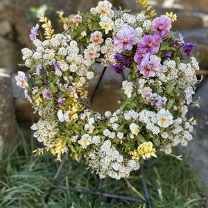 ペルクレアとアリッサムのリース🌸 いろんな色のペルクレアを入れてリース😊 アリッサムもモリモリになってきて かわいいです😃