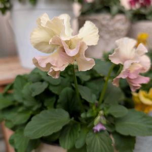 昨年12月隣市の花屋さんで見つけた 花なしのお姫様だったり 少し元気なかったりの お安くなったパンビオさんたち✨️ パルムディレーヌ.°ஐ.* ペルクレア.°ஐ.* 冬色くれよん🐰 オリジナルビオラ.°ஐ.* 綺麗に咲き出しています(◍︎´꒳`◍︎) 1番後から咲いたペルクレア❶ クリーム色のカワイイコでしたෆ˚* 軒下に持ってきた花台テーブル🪴 花数が増えてきてウキウキです♪̊̈♪̆̈ 昨日は隣市に用事があり 帰り道に寄ったホムセンで 欲しい苗がいくつか🤤🤤🤤❺ うちの近くでは見たことない〜(๑♡∀♡๑) フィンガーライム、レウコスペルマム 初めて知ったジャボチカバ? ずっと探してたミニバラモカ (こちら少し前に遅めの誕生日プレゼントに ネットショッピングにてミニ苗を頂く🌹) ラナンキュラスランドセルシリーズも ホムセンで初めて見ました❁⃘*.゚ 花なし20cmくらいのが税抜き1480¥ 欲しかったけれど見るだけ見るだけ〜👀 明日(今日)お花屋さんのセール行く予定だし( ˆmˆ ) お手頃👛なライム色のアリッサムと 消えたリシマキアリッシー🌿,,を連れ帰りました🚗³₃ 昨日・一昨日の 📸❶ꕀ⋆❹