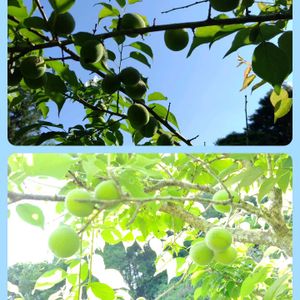 ①実家の父が「梅を採りに行くぞ」と言うので、2人で脚立と大きな籠を持っていそいそと出かけて行ったのですが、畑に着くと実が全然生ってないので、「あれ?、まだ早かったか?」と…。 でも探していると、木の上の方に大きな梅の実が数個見えました🟢🟢🟢 誰かに盗られてしまったみたいでした😓 ②収穫出来たのはこれだけ💦スーパーの小さな袋もいっぱいになりませんでした🤣 多分、想定していた10分の1以下だと思います😭 それでも3kgぐらいあったんじゃないかな😂 父は楽しみにしていたのに凄くショックだったみたいですが、まぁそんなに沢山収穫出来ても食べきれないし、却ってちょうど良いくらいの量だったのかも😅 私にも1kgぐらい持たせてくれたので、梅ジャムにでもしようかな🟢🤗 ③④梅の木の近くにある🌳を父が教えてくれました😄 キンカンみたいな実が生ると…。 近づいて見てみると、濃いグリーンの実が沢山生っていました🟢🟢 枝には長くて鋭い棘が💦😱 検索すると「カラタチ」と出ました。 昔、「カラタチの花」という歌がありましたね😚 白いお花が咲くみたいです💮 別名カラタチバナ(唐橘)と言うそうです🤗