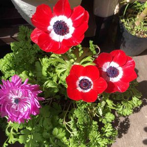真っ赤なアネモネちゃん❣️ 元々混じってたのかな?買った時はピンクの品種が違うのしかいなかったのに、こっちがメインになってる(笑)