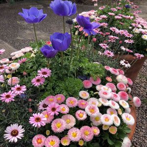 おはようございます☀️ 今朝の寄せ植えの白のアネモネさん 一緒に植えた ネメシアチョコバナナ🍌は ず~っと咲き続けていてビックリ👀‼️です❣️