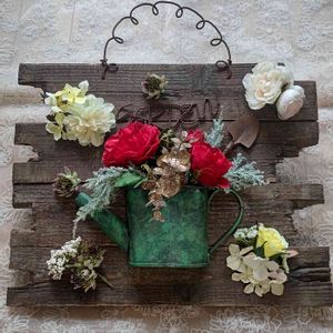 ずっと前にご紹介した 玄関飾り 真ん中の緑のジョウロの部分だけで、寂しかったので 周りに色々つけて賑やかにしました。 今は玄関ドアーに飾ってあります❣️🍀🤗☀️ 今日も元気にお過ごし下さい💞💞💞