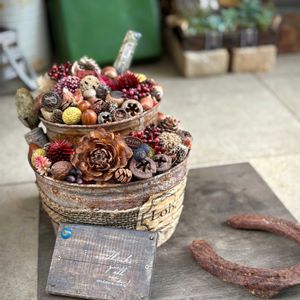 多肉と木の実のケーキ🎂 傷んできたのでリセットしました 暑すぎて外での寄せ植えは ホントに辛い、、 集中力が続かないー💦 涼しくなるの待ち遠しいですね〜 もうちょっと落ち着いて寄せ植えしたいな😅