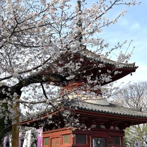 喜多院の多宝塔と桜🌸 境内には満開の桜でいっぱい🌸家族連れが お花見を楽しんでました🍻🌸🍡 淡いピンクのソメイヨシノが咲いてる中 濃いピンクのツヅジが鮮やかでした💖 枝垂れ桜は残念ながら葉桜🌸🍃 日も落ちてきて暗いpicになりました🌆🌸 4/5撮影