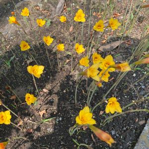 里山散策にて 2025 年4月11日、13日撮影 ❶↗ヤマブキ(八重咲き) →フユシラズ ↘オウバイ ↙クサノオ ↖ペチコート水仙 ヒガンバナ科 スイセン属 土手に咲いていました。 黄色いスカート状の花、葉は細い線状でとても印象深い姿でした。 「ナルキッスス・バルボコディウム」と言う学名(覚えきれないです(;・∀・) ❷八重咲きヤマブキ バラ科 ヤマブキ属 別名 ヤマブリ ❸クサノオウ(草の黄) ケシ科 クサノオウ属 林の側に群生していました。 遠目からは菜の花に見えました。 ❹オウバイ モクセイ科 ソケイ属 半つる性 ❺フユシラズ(冬知らず) キク科 カレンデュラ属 別名 ヒメキンセンカ どの花も明るい黄色で素敵です。 🏷月曜日にビタミンカラー