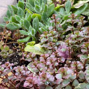 ネオレゲリアファイヤーボールを迎えました☺️ 赤い葉と1度咲く紫色のお花が見たくて❣️ 育て方も注意点があるようですので気をつけないとですね💖 横には落ちてたプルメリアも一緒に置きました❣️ 上に頂いたエアープランツがいます🎶 少しずつ🤏大きくなってきてるかな?😆 ネオレゲリアは、ブラジルを中心とした南アメリカの熱帯・亜熱帯地域原産のブロメリア科ネオレゲリア属の総称になります。 ロゼット状に広がる葉の基部は、水を溜められる筒状になっており、葉は硬く縁には小さなトゲがあり、岩や木、地面などから生える着生植物の仲間になります。 他の植物と違い水やりの際には、この水が溜められる葉の基部に与えるようにし、常に水が溜まった状態にするという注意点があります。 ネオゲレリアは熱帯植物らしい鮮やかな葉色や、模様があるのが特徴です。 一見、この葉の広がり方が花のようにも見えますが、実際には筒の中心部に小さな花を咲かせ、開花が近づくと株の中心部の葉が赤くなるという性質があります。 主な開花時期は、春から初夏になり、株の中心部に剣山のような短い花芽を出し、紫や白などの花を咲かせます。