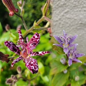 こんにちは☔ 今朝の朝顔さん雨に濡れながら ピンクがきれいに咲きました 杜鵑草は今日2輪咲いて 計3輪になりました ミックスと言いながら 同じ種類のように思えます 最後は花壇でかなり虫に食われた 竜胆咲き杜鵑草ですが 咲くにはもう少しかかりそうです