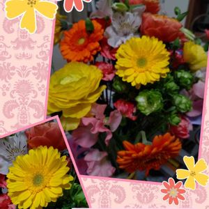 この子たちも花束シリーズ! めっちゃカラフルで豪華な花束いただいてテンションup!
