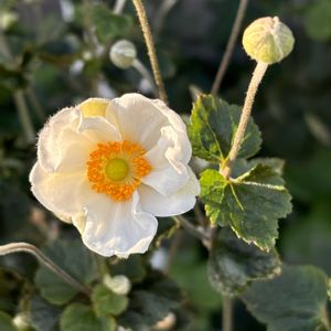 今年の秋明菊は一輪ずつ咲きます⁇ 朝日を浴びた姿に一目惚れ🤍