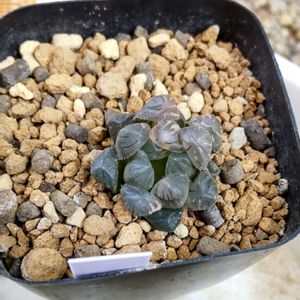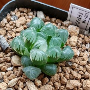 前から気になっていた、傾いたハオルチアのOB-1錦をまっすぐに植え直しました✨🥰 今さらですが、今年は遮光ネットを買ってきて、遮光しながら外で管理してみようと思います。 きれいに元気に育ってほしい…🙏