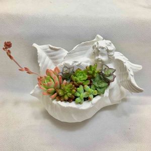 おはようございます☀ 1番最近作った寄せ植えです ୧(๑ ⁼̴̀ᐜ⁼̴́๑) 蒸し暑いので爽やかな草花でまとめました✨ 小さな天使ちゃんは100均です~🤫🤫❤️笑
