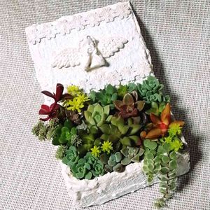 🍀初モルタル宝箱🍀 本当はブック寄せを作りたかったんですが… モルタルは手強かった💦 増やした多肉さんをぎゅうぎゅうに詰め込みました✌️ (◍•ᴗ•◍)ゝうん可愛い💝