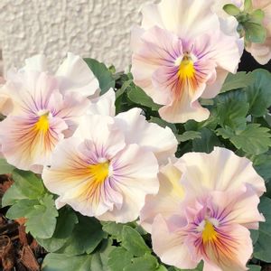 やっとパンビオお迎えして来ました❣️ フリル咲きパンジー3色+α ドラキュラとかモモコとか華あられとかとか 色々みたけど… えーってなるほど今年はお高かったです😆😅💦 結婚記念日だったし どれ買ってもイイよ🎶って 家人は言ってくれたけど いや〜このパンビオちゃん達で十分です🙌
