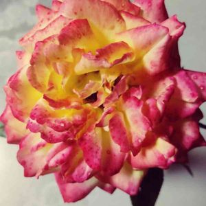 こんばんは〜〜(*^_^*) 今もまだ 蒸し暑いです。扇風機を使用中💦 このお花、ファンタジア💕💕 暑い中 綺麗に咲いてくれましたよーー(((o(*゚▽゚*)o)))♡ 花弁裏が、白く 白いかすりや筋が入ってます(*^_^*)