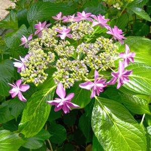 おはようございます 小さな花が可愛いヤマアジサイ 挿し芽でそだてて何十年も毎年咲いてくれます₍^ >ヮ<^₎☆