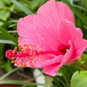 雨上がりにピンク色のハイビスカス🌺 可愛らしい💕💕