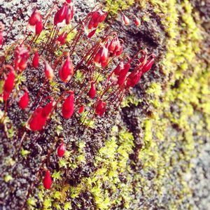 おはようございます☁️ 雨上がりの塀に生えてる苔。 赤い胞子嚢がキラキラしてて綺麗✨✨✨