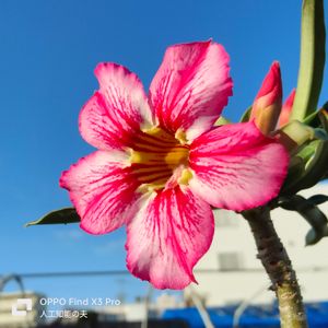 おはようございます♪ 今朝の #沖縄 の天気は曇り。 #アデニウム #ソマレンセ「クリスパム」 開花♪ 最近の冷たい風で葉を落としていますが、綺麗に開花しました♪ #畑仕事