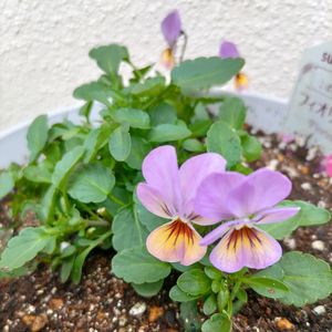おはようございます☺️少し風が強く吹く時があります💦1️⃣ビオラ🎶ルビー&ゴールド✨はっきりした綺麗な色で気に入ってます😊2️⃣サントリーフィオリーナオーロラ🎵なんか少し色が薄いかなあ😅こんな感じなんかなあ❓
