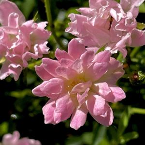 ミニバラ微笑みさん いっぱい咲いてます💕 暑いせいなのかこの時期に咲く花は ちぢれた形 でも可愛くて癒される(^^)