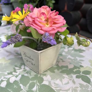 今朝摘んだお花をウッドデッキのテーブルに飾ってみました🥰 本格的な暑さが訪れる前のこの季節、ここに座ってお花を眺めながらお茶を飲むのは、最高に気持ちが良いものです💕