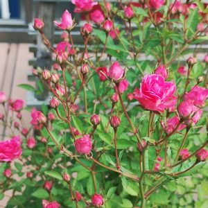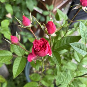 ミニバラ💗ほほえみルージュ 見頃を迎えようとしています (モニター期間は終わりましたが)いただいて一年近く♪立派に大きく育ちました😃❣️ 鉢増しのタイミングを逃してしまい、窮屈そうです😅 🏷️ほほえみルージュモニター