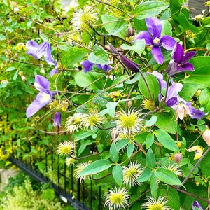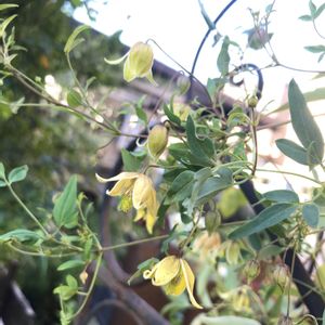 怪しげに西に沈みかけた昨夜の月とは、裏腹に程よく気持ちの良い朝です ベランダのクレマチス、ラベルには *ビルマッケンジー でしたが花が地味~に小さすぎるので、調べてみたら*マイエンジェル のようでした (*ToT) お花2cm弱の地味~なエンジェル達が遊んでいます🤷🏼♀️