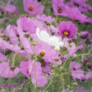 「コスモス💠」 ひとつだけ 白い色が混じって咲いていました。(’-’*)♪