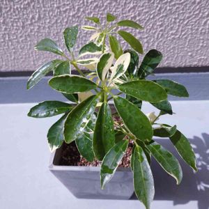今日の植活① 明日が母の日という事で 母親と一緒に園芸店やHC巡りをして来ました🚘️ 明日の天気予報、私の住んでる地域は大荒れだったので😅 母親の欲しがってた、寄せ植え用の花だけを買うつもりだったけど、またもや素敵な出会いが🎵 斑入りシェフレラさん🍀 今までも何度か見かけていたけど、スゴく状態の良い子だったので、お迎えしました✋ 先日ポチった子が今日も到着🎶 長旅の疲れも見せず、銀色に 光り輝いています✨ ビーカーで水耕栽培していた子も、根がしっかり出て来たので 鉢上げしました✋