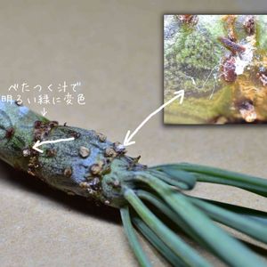 カイガラムシに冒されて、本体瀕死(இдஇ; ) 葉っぱのある幹だけで再生してみます。 茎に触ると幸せになるそうですが、変な汁でベタベタして気持ち悪いです˚‧º·(˚ ˃̣̣̥⌓˂̣̣̥ )‧º·˚