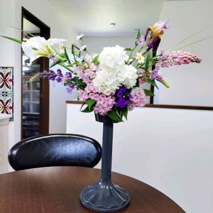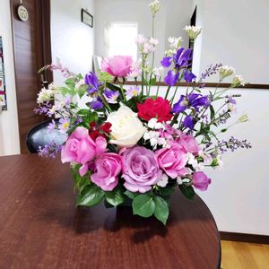 こんにちは😊 今、パラパラと雨が降ってきました💦 1枚め…今日のフラワーアレンジ💓 ついに、薔薇🌹を自由に花材に出来る季節になりました⤴️⤴️ 2枚め…庭の大好きな紫💜の花たち💓 🏷愛しの紫💜 3枚め…昨日のサクランボ🍒のビニールテント掛けに続き、今朝早くには紅柿の消毒作業をしました😂 まるで、農家さんみたいです🥹💦(←趣味の園芸だと思っていたのに…😂) 4枚め…トラック🛻の荷台に上り、消毒液をかき混ぜてるのが私の係り…😙👌 そしたら、女帝さまがやってきて、カボチャ🎃の苗の周りに、鎌で刈ってきた草を散らし始めました👀💦 近くには草を乗せてきた手押し車が… 失くしたと心配してたけど、無事に戻って一安心🤣💦 91才とは思えないくらい、体だけはすこぶる元気です(笑) 今日もぼちぼち頑張りましょう💓