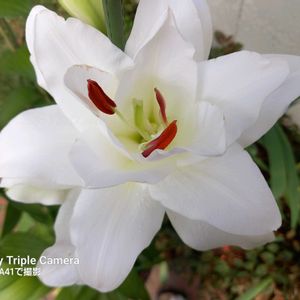 オリエンタルリリーアヌースカ 7/3に投稿したアイシャは、たくさん綺麗に咲いてました。 アヌースカは、2週間後に咲いてるので、一緒に投稿できない😌 フォローしてる方が、綺麗なアヌースカを投稿されてるのを見て、今朝写真撮って🤳たので、投稿しました。 白い八重咲きの百合は、花びらが雨続きだと黒ずんでしまったり、完全に開かずにダメになるのもありました。 綺麗に咲いてるのが見れて良かったわ( ・▽・)>♡<( ・▽ ・ ) 🏷白い水曜日♡ 真っ白ではないけど、白い花として見てくださいね