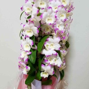 こんばんは😃 私の誕生日祝いに花が届きました🎵 嬉しい~😊💗 。。。が、花の名前が判りません💦 蘭の一種であることは判るのですが😅 大事に育てたいので、どなたか名前をご存知の方いらっしゃったら、教えてください😆 よろしくお願いします🍀