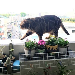 ピンク色のかわいい月花美人を見つけました💗 葉っぱが何枚か取れてるので葉挿しで増やそうと思います🌿 帰ってきたら、猫ちゃんが座っていました😸