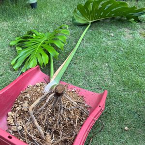 モンステラ・バールマルクスフレーム 去年の10月に105ロングのネガミエルに植えましたがこのくらい育ちました。まだ葉は割れていません。 鉢底からまあまあ根が出て来てしまったので今日植え替えます。
