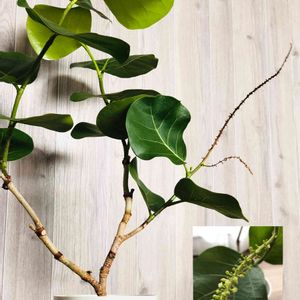 うちのシーグレープ の全容🌱 連れてきた6月末には小さな小さなお花を付けていました。沢山ではないけど、それが実になろうとしていたのか、はたまた遅れて咲こうとしているお花だったのか? 小さな膨らみが所々付いていたのに、私の不注意で雨に当てたり、移動中にサッシや自分の身体に当てたりして先日全て落ちてしまいました。 その後見る間に退化しこの状態。 でもその下に新芽を見せてくれました✨ 記録を残したので、切ってあげようと思います。 ごめんね、ありがとう。