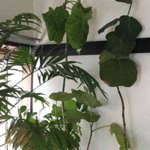 ちょっとわかりにくいですが、ウンベラータとシーグレープはこんな状態です。 冬に葉が落ちた所を無視し、上下から新芽が… 剪定する勇気もなく、このまま育ててみようかと。