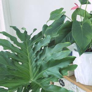 セロームとアンスリウム 窓際で頑張ってます セロームは3年目くらいかな いつも葉っぱ2枚くらいにして ますが 今年は5枚残しました アンスリウムは 今年初の冬越し に挑戦中〜