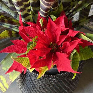 今日のお花🎄ポインセチア トラフアナナスと😊