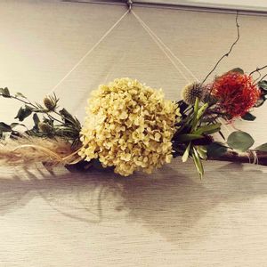 たまたま流木を頂いたので、家にあったドライの植物をつけてみました。🪵🌿💐