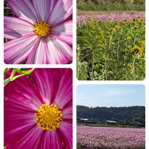 車🚙で3分 保育園近くの田んぼ🎶 コスモスはな🌸とヒマワリ🌻💞