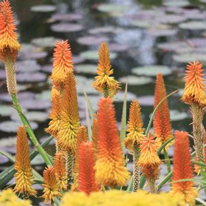 東南植物楽園シリーズ 水辺を彩るビタミンカラーの アロエの花が綺麗でした🧡🌱 背景は蓮池🪷🪷🪷