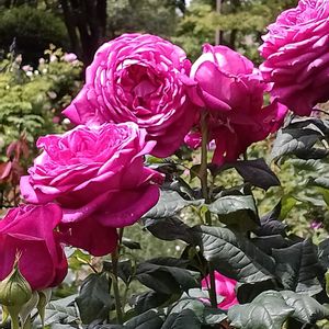 ①②今少し咲いているバラ🌹 ①ハンスゲーネバイン 大株なので、この時期でも一番花数が多いです😍 ②ゲーテローズ(今年は初開花✨️) ✾ピエールドゥロンサール ✾フリュイテ ✾マチルダ ③ベルノニア·ノベボラセンシス 別名 ヤナギバタムラソウ 3〜4年目で年々伸びて今年は3m超えてます😳 高すぎてそのままでは撮れず… 手繰り寄せました😅 ④シレネユニフローラピンク 以前から咲いていますが中々投稿できずでした🌸 ⑤今日のお花✿ ハイビスカス·ローゼル 耐寒性を考えるとお迎えできずにいましたが、皆さんの投稿を拝見して実を期待して🤭 お花は9〜11月の様なので葉だけ🌿 お花だけでも見てみたい🥰