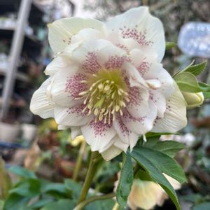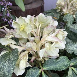 こちらもシルバーリーフのクリスマスローズ。ピンクフロストと一緒に寄せ植えしています。よく似ていますが花がこちらは白が強くなります。